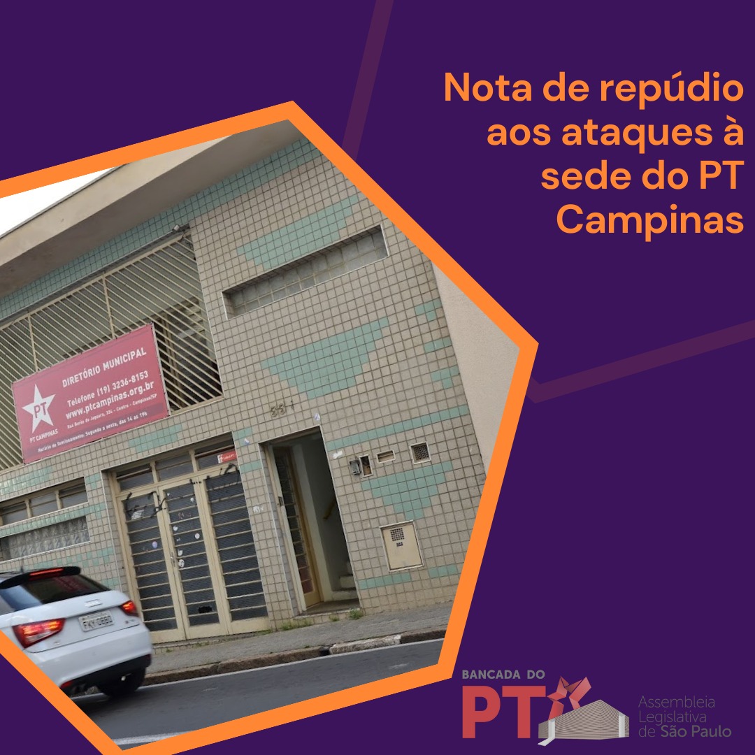 O ataque à sede do Partido dos Trabalhadores da cidade de Campinas ocorrida em 26/1 é mais uma ação criminosa e covarde que suscita repúdio e indignação na bancada das deputadas e dos deputados estaduais do PT.