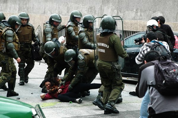 Nossa bancada repudia a violenta repressão, da polícia e do exército chileno, e a ação de grupos que desferem ataques violentos e ameaças à advogada da Defensoria Popular María Magdalena Rivera Iribarren, militante do Movimiento Internacional de los Trabajadores (MIT) e conhecida defensora dos direitos dos trabalhadores chileno.