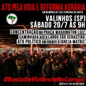O avanço diário da violência, com a atrocidade que tem tomado conta do cotidiano da sociedade brasileira, desde o processo eleitoral, elegendo o capitão Jair Bolsonaro, teve mais um cruel capítulo na manhã da quarta-feira, 18/7, com o assassinato de um integrante do Movimento dos Trabalhadores Rurais Sem Terra, na cidade de Valinhos, na região de Campinas.