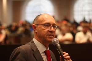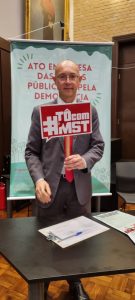 Pedro Serrano foi um dos juristas presentes no ato, dando uma verdadeira aula de história e democracia, ao apontar que a ação do governador Tarcísio de Freitas repete a “tradição reacionária, com maquiagem liberal, da elite agrária brasileira”.
