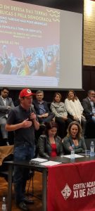 Carta lida por Kaleb Fernandes, do Coletivo de Juventude do MST e pela diretora do Centro Acadêmico XI de Agosto, Christine Magri Garabosky, foi assinada pelos parlamentares, juristas e movimentos presentes, e será amplamente divulgada para conclamar “homens e mulheres, do campo, da cidade, das florestas e das águas para uma ação coletiva em defesa das terras públicas e da reforma agrária no Estado de São Paulo”.