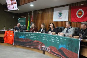Liciane Andrioli, da coordenação nacional do Movimento dos Atingidos por Barragens (MAB) apresentou dados sobre as barragens existentes no Estado de São Paulo. São quase 7,5 mil barragens cadastradas no sistema nacional da Agência Nacional de Águas (Ana), seja para abastecimento, geração de energia, mineração etc. Ela destacou que as informações são fornecidas pela empresa dona da barragem e observa a ausência de dados sobre o potencial de risco desses empreendimentos. Há, portanto, ausência de controle das possibilidades de rompimento das barragens no Estado de São Paulo.
