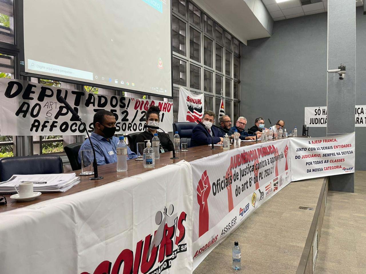 Oficiais de Justiça de mais de 30 cidades paulistas reuniram-se nesta quarta-feira, 1/12, na Assembleia Legislativa, para debater os impactos do PL 752/2021 para a categoria. A audiência pública, promovida pelo deputado Emidio de Souza, teve como objetivo avaliar o projeto apresentado pelo Tribunal de Justiça do Estado que, entre outras coisas, modifica os percentuais de destinação do produto arrecadado com as custas processuais para o custeio das diligências dos oficiais de justiça. Atualmente, 10% da arrecadação é direcionada para custear as diligências. O projeto de lei pretende reduzir o percentual para 5%.