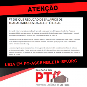 Paulo Fiorilo também chamou atenção para os aspectos legais dessa medida, que impõe graves prejuízos aos trabalhadores. O deputado propôs ainda, em seu voto em separado, que a redução dos subsídios dos parlamentares fosse feita de forma escalonada e progressiva. Assim, os descontos partiriam de 30% e chegariam até 50%, com base nos rendimentos e patrimônios apresentados pelos parlamentares nas declarações de imposto de renda enviadas à Receita Federal, em 2019.