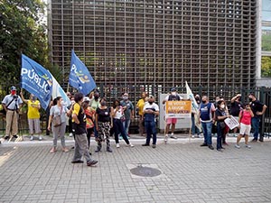 Pela segunda vez, servidores públicos estaduais se concentraram em frente à Assembleia Legislativa para protestar contra o PLC 26. Eles cobraram dos deputados estaduais a rejeição da propositura, que terá reflexos negativos e danosos para a sociedade paulista ao fragilizar as carreiras de estado por meio de manobra que permitirá a consolidação de contratações temporárias em detrimento do concursos públicos.