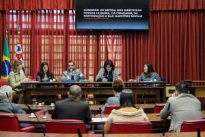 João Camilo Campos, secretário de segurança pública do Estado de SP esteve na comissão permanente da Alesp que trata das questões da pasta. O convite acontece por força de lei, que prevê a presença de secretários de Estado em comissões afins, para a prestação de contas de sua gestão. Na semana passada, a deputada Beth Sahão, que também é presidente da Comissão de Direitos Humanos, pediu a convocação do secretário de Segurança Pública para esclarecimentos sobre o aumento do feminicídio e sobre o assassinato de uma jovem , a tiros, na Cracolândia, durante uma operação policial. Em vista da já agendada presença de João Camilo na Comissão de Segurança Pública nesta quarta (29), os membros da Comissão de Direitos Humanos decidiram aproveitar a oportunidade e apresentar suas indagações ao secretário na data de hoje. Questionamentos foram feitos. Faltaram as respostas. Assista: http://bit.ly/BethPergunta