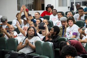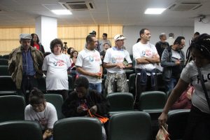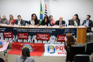 Representantes e lideranças da população de rua participaram nesta quarta-feira, 7/8, do lançamento da Frente Parlamentar em Defesa da População de Rua, na Assembleia Legislativa. A deputada Beth Sahão destacou que este foi o primeiro evento específico no Parlamento paulista com este segmento social. Alguns encaminhamentos saíram do encontro: derrubar vetos do governador a projetos de lei de interesse da população de rua; regulamentação da PEC 4/2017, que proíbe utilização de recursos da assistência social para pagamento de despesas com pessoal e encargos sociais; cobrar do governo o funcionamento noturno e nos finais de semana dos restaurantes Bom Prato; reformulação dos albergues públicos; e política de moradia para as pessoas em situação de rua.