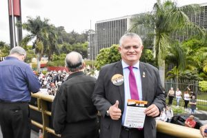 O deputado Dr. Jorge do Carmo participou do início do ato contra o PL 899/19. Diversas categorias do funcionalismo público se concentram agora, em frente à Alesp. Antes, Arnobio Rocha, presidente da comissão de Direitos Humanos da OAB-SP faz uma intervenção de apoio ao ato.