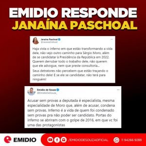 Do Facebook do deputado José Américo – O deputado reproduz sua resposta à deputada do PSL e afirma que “Moro e Janaína Paschoal são especialistas em acusar sem provas”.