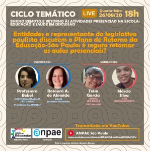Quinta-feira, 27/8, às 10h, em ambiente virtual, com transmissão ao vivo pela Rede Alesp.