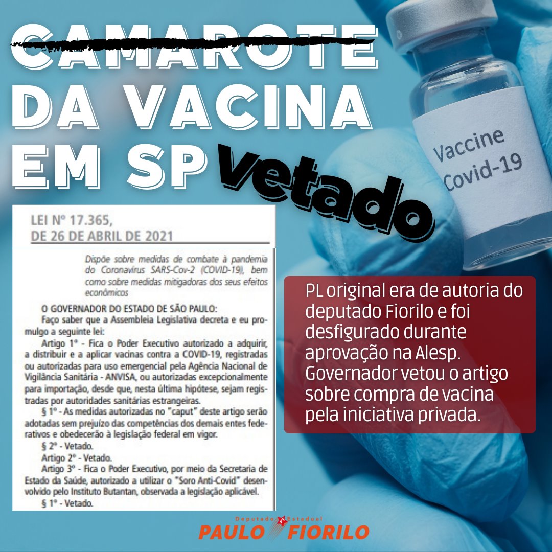 VETO PARCIAL – PL 108/2021 – Projeto original do deputado Paulo Fiorilo (PT) foi aprovado com a redação proposta por Adalberto Freitas (PSL) e outros – Dispõe sobre medidas de combate à pandemia do Coronavírus SARS-Cov-2 (covid-19), bem como sobre medidas mitigadoras dos seus efeitos econômicos. (Lei 17.365/2021)