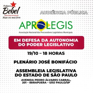 Quinta-feira, 19/10, às 18h, no plenário José Bonifácio.