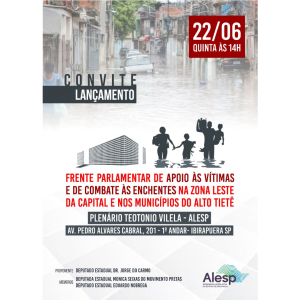 Lançamento da Frente Parlamentar de apoio às vítimas e de combate às enchentes na zona leste da capital e nos municípios do Alto Tietê