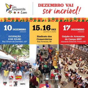 Feira Esquerda Livre em versão gastronômica, no dia 10 de dezembro, na Ocupação 9 de Julho