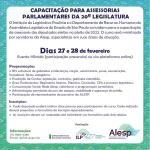 Capacitação para assessorias parlamentares: inscrições prorrogadas até 10/2