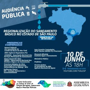 PL 359/2021 – Governador – Autoriza o Poder Executivo a contratar operações de crédito junto a instituições nacionais e internacionais, a prestar contragarantias em operações de crédito a serem celebradas pela Companhia de Saneamento Básico do Estado de São Paulo – Sabesp, a instituir a Loteria Estadual de São Paulo, a alienar ou ceder direitos possessórios ou reais e conceder o uso de imóveis, altera a Lei nº 17.293, de 15 de outubro de 2020, que estabelece medidas voltadas ao ajuste fiscal e ao equilíbrio das contas públicas, e dá providências correlatas. Em regime de urgência, recebe emendas até amanhã, 11/6.