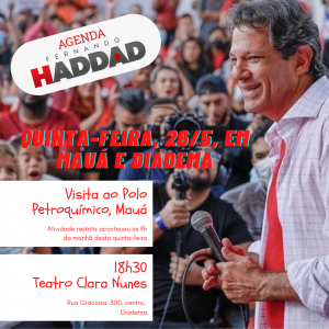 Do Facebook do deputado Teonilio Barba – Na manhã desta quinta-feira, 26/5, acompanhamos o companheiro Fernando Haddad, nosso pré-candidato ao governo do Estado de São Paulo, em uma visita ao Polo Petroquímico de Mauá. Foi uma excelente oportunidade de conhecer melhor o trabalho dessa importante indústria que gera empregos no ABC, produtos fundamentais para o dia a dia de toda a população, além de riquezas para o Brasil e para São Paulo.