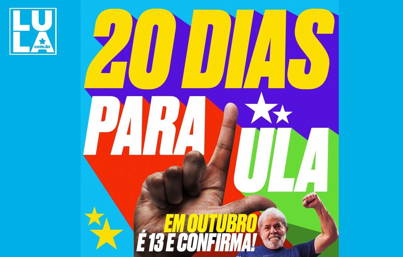 Na segunda-feira (12) o país se agita com uma verdade: faltam 20 dias para eleger Lula presidente! Agradecemos MUITO o carinho e a presença de todos que já nos acompanham nas redes e no site. A luta pela verdade é diária e agora, mais do que nunca, precisamos somar forças! Venha ser voluntário do Verdade na Rede!