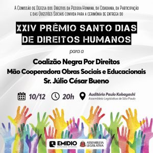 Segunda-feira, 13/12, às 11h, em ambiente virtual e com transmissão ao vivo pela Rede Alesp.