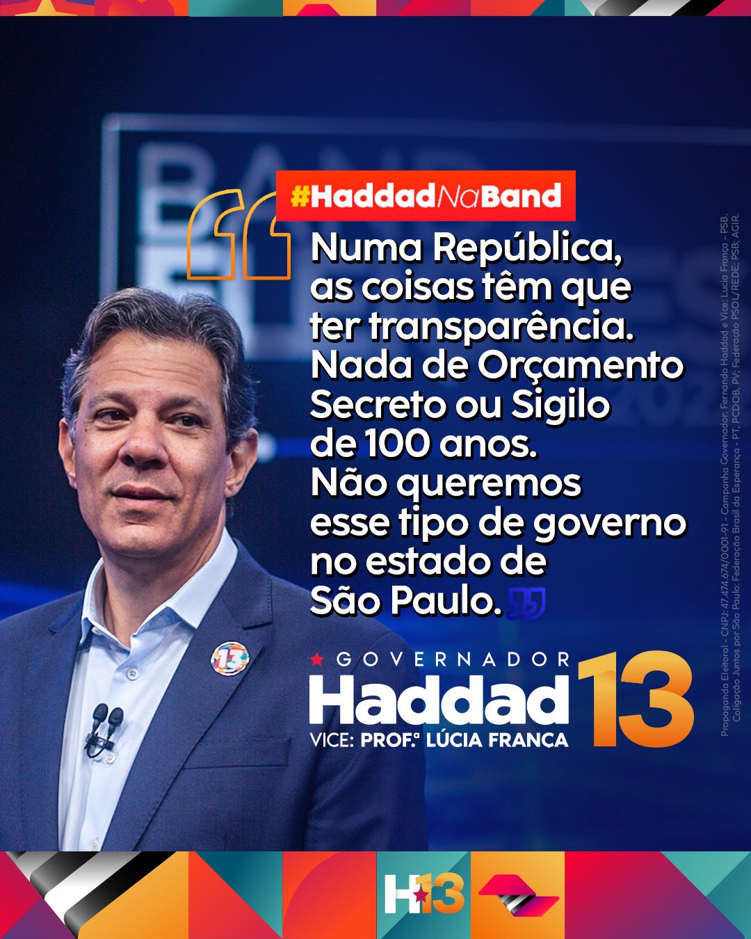 Haddad cola Tarcísio a erros de Bolsonaro, discute modelo econômico, papel do Estado, pobre no orçamento versus controle do mercado e trata Lula como futuro presidente. Na RBA.