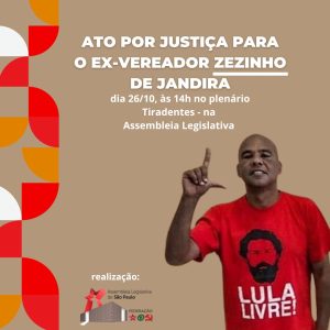 Apesar das ações das deputadas e dos deputados do PT na Assembleia Legislativa de São Paulo, junto ao delegado-geral de Polícia do Estado, no sentido de que a investigação das circunstâncias da morte de Reginaldo Camilo dos Santos, o ex-vereador Zezinho, fosse conduzida pelo Departamento Estadual de Homicídios e de Proteção à Pessoa (DHPP), o crime segue sem ser desvendado.